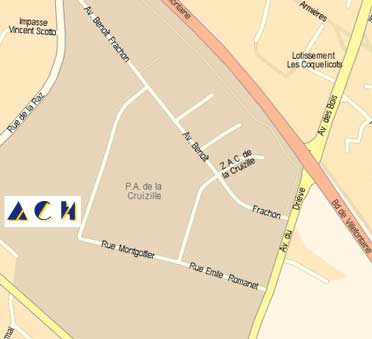 A la sortie du péage au rond point prendre la deuxième sortie direction "Villefontaine" sur le boulevard Steve Bike (D318). Au rond point suivant prendre également la deuxième sortie. Au rond point suivant prendre également la deuxième sortie. Au rond point suivant prendre la première sortie sur le boulevard de Villefontaine (D313). Prendre la quatrième route à gauche sur l’avenue du Dièvre. Puis prendre la deuxième route à droite (en face du théatre, angle du garage Renault). Continuer tout droit sur la rue Montgolfier, ACH se trouve dans le virage sur la gauche.